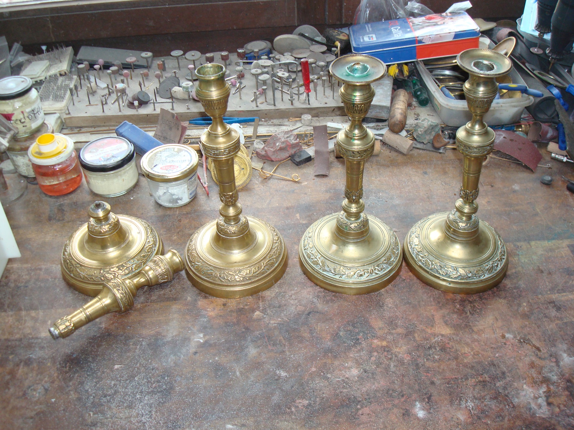 ca. 1780 - 1820. Alle Lötstellen wurden überarbeitet und rekonstruiert. Danach wurde er aufgearbeitet und neu vergoldet.